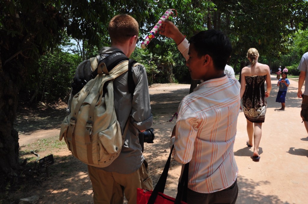U.S. Dollars are apparently the main currency here. Basically one can buy anything they want here in Siem Reap – from postcards to jewelry – for a dollar. In fact, later on in the day, one young man was so convinced that Greg needed a flute, that he offered three of them for $1. I think we can all agree that this would have been a fine hobby for Greg to take up, but Greg would have none of it.