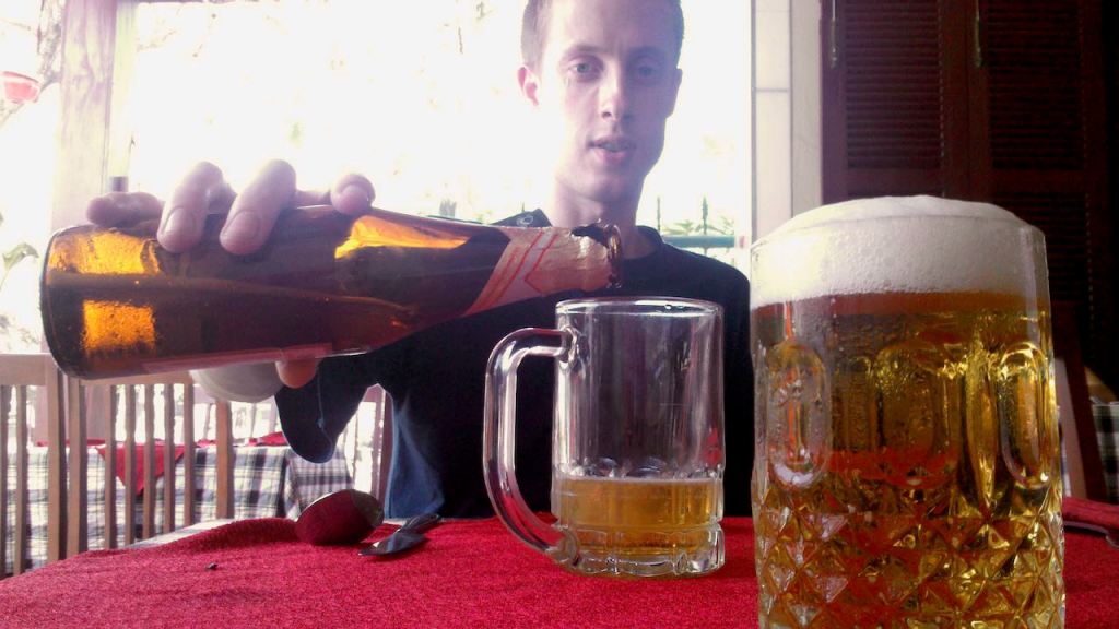 We have arrived in the ancient town of Hoi An. Our hotel looks like it is from 1963. We were quite hungry, so we went to a cafe across the street. I got a 3000 dong beer. That’s a little more than a dime. Therefore, I can have about 6 of these for the price of a coke. Just wanted you to know I am being careful with my money. Greg, in true capitalist form, paid the indulgent amount of 41 cents for his.