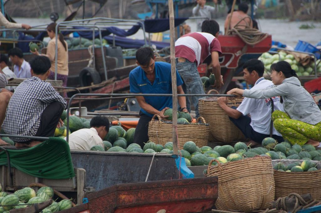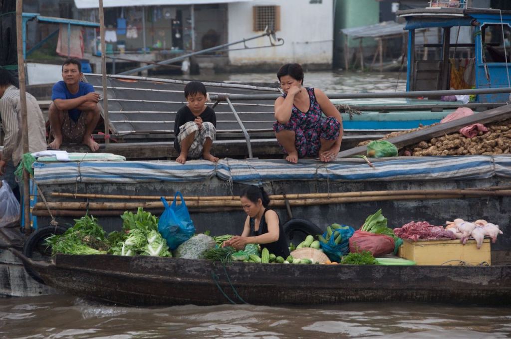 We got up early again to meet with Jason SuperStar. We sat atop our boat for a better view of the floating market. As Greg mentioned in his blog, it was overcast, so no epic sunrise shots over the market, unfortunately.