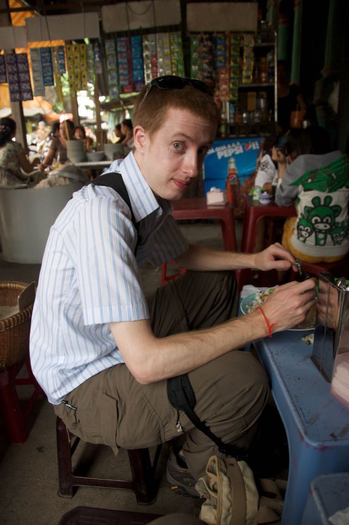 People really seem to enjoy sitting very low to the ground here. I’m not sure why – it really isn’t that comfortable. I guess there’s a chair shortage in Vietnam. Anyway, after our fine breakfast of chicken and rice, I’m really starting to crave an In N’ Out Burger. That may be my first stop after getting back to L.A.