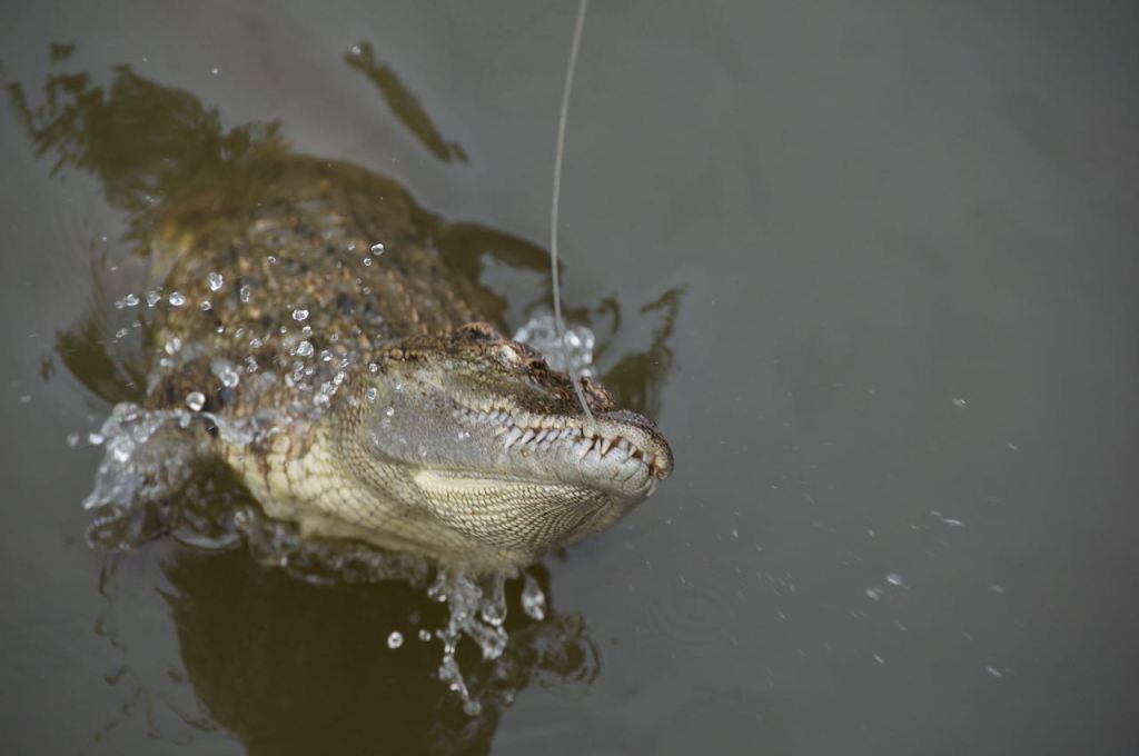 We’ve actually had some pretty good meals here, but I think it’s reaching the point where I just really want a big juicy burger and sweet potato fries – finished off with some of Nicole’s chocolate chip cookies. We spent a little bit of time on an island in the Mekong, which was really just some kind of investment miscalculation. I guess someone thought tourists would come in droves. Nope, just us. We got to fish for crocodiles, though. They seemed to like chicken for breakfast much more than I did.