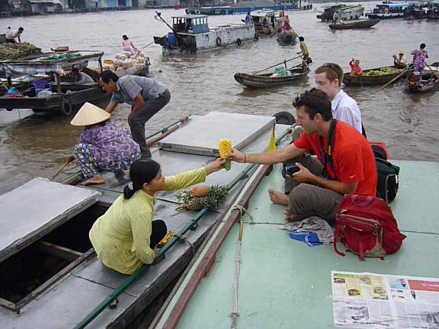 And finally a picture of us receiving a pineapple from the floating market this morning.