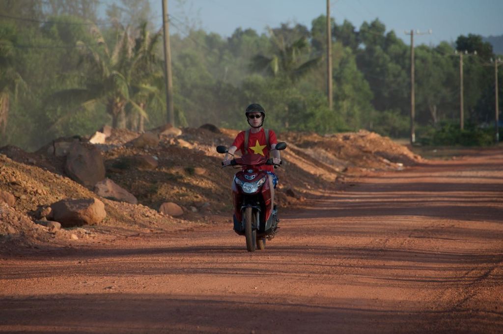 I do however have a video to offer you – taken with a helmet-mounted camera. Dear mom, you will notice that we are both wearing helmets. Unclench. We also drove safely – yielding to both cows and dogs alike. I would never do this in Hanoi or Saigon, but traffic on the island is light, so it was perfect for us to just enjoy the ride.