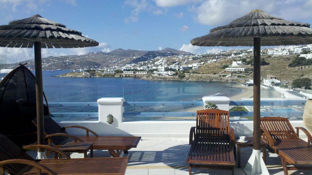 After our adventures in Delos today, we felt that we had covered every street and alleyway in the town of Mykonos. We ended up spending the rest of the afternoon and evening relaxing at the hotel. We spent some quality time at the hotel pool bar, which was pretty much empty since it was a little chilly. This picture that I took with my phone makes it appear warm, but I can assure you it was not.