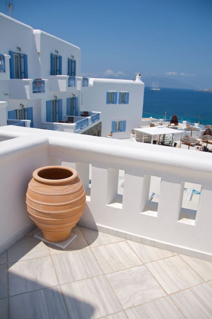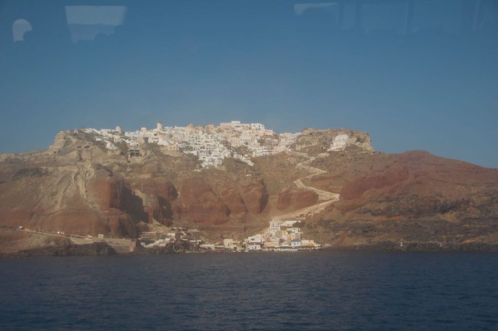 We killed about two hours at our hotel in Mykonos before it was time for us to catch the boat. The boat ride was reasonably fast. We arrived in Santorini early in the evening. So far, I would summarize the island as misleading. There are two main towns on the west coast of Santorini: Thira and Oia. Online, our hotel is shown as being right in the middle of the town of Thira. In reality, it’s kind of in the middle of nowhere. We were told it was only a mile walk to the town. This was also a lie. This so-called one mile walk aka trail of tears, took us by such fascinating sites as gas stations, industrial parks, and enough weeds to aggravate my allergies substantially.