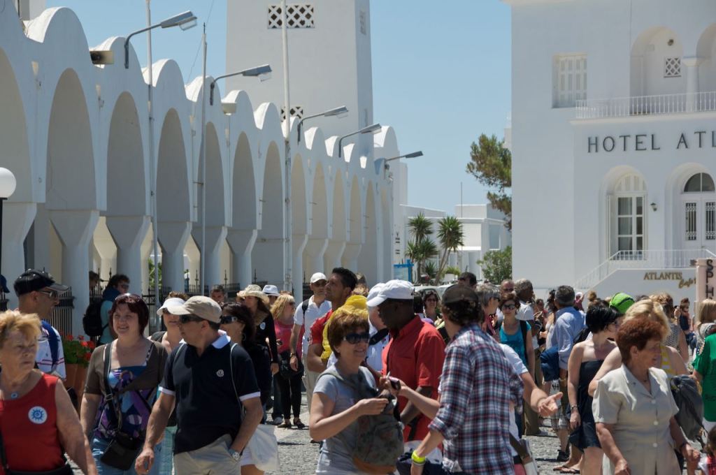 It would seem that the cruise ships unloaded everyone today. It was chaos. It was like dealing with French and German speaking zombies. They were slow moving and looked very confused. The picture here was taken in a large square area, so imagine how it would look when these masses get funneled into the narrow alleyways of the town of Thira. Also, no one gets out of the way when they approach head on. The idea of giving way and respecting personal space seems to be a uniquely American concept. I had my feet stepped on with no apology. The worst.