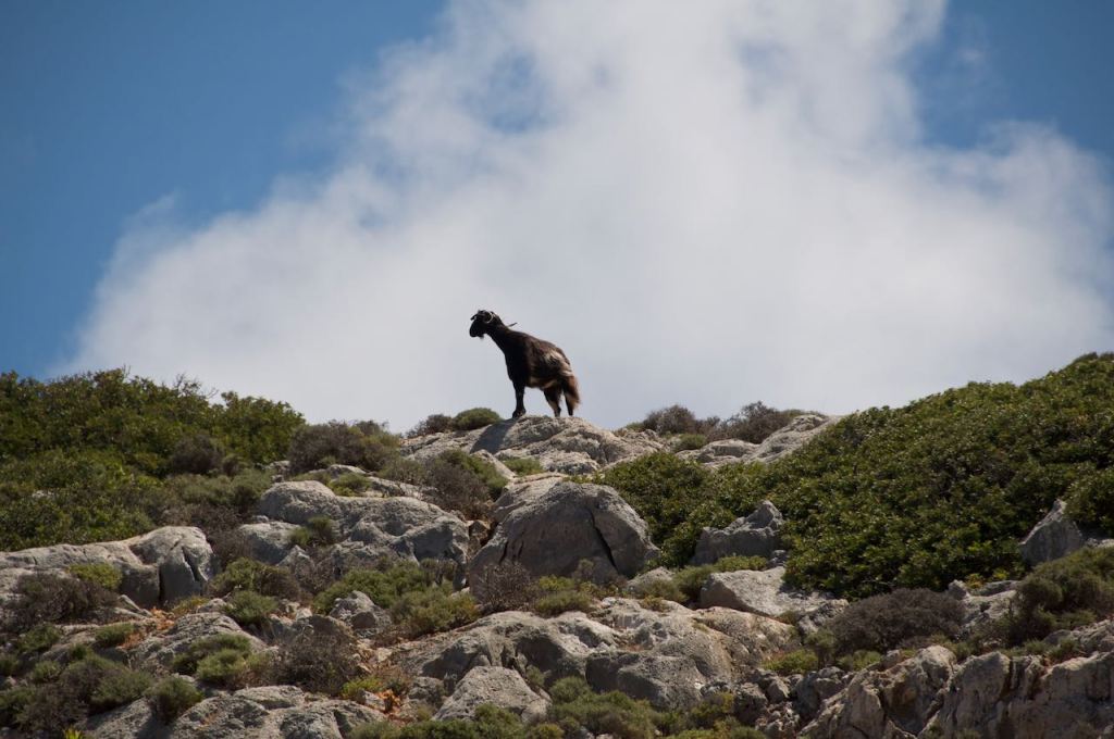 After our hike, we continued southwest toward an elusive beach called Elafonisi. I say elusive because there is no good way to get there. We had maps, but the roads that were depicted in bold yellow (and implied a major road) ended up being a single track dirt road through the mountains. One knows they are not on the best road, when they have to yield to goats.