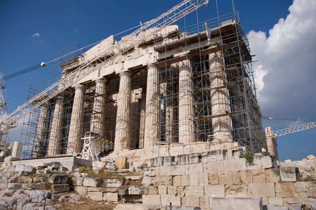 It was, however, covered in lots of scaffolding and restoration work. Still, the condition was better than many things we have seen in Greece. My Dad was very excited about all this. We circled the entire complex more than once. It was tough to keep up as he pranced around sassily, hand on hip.