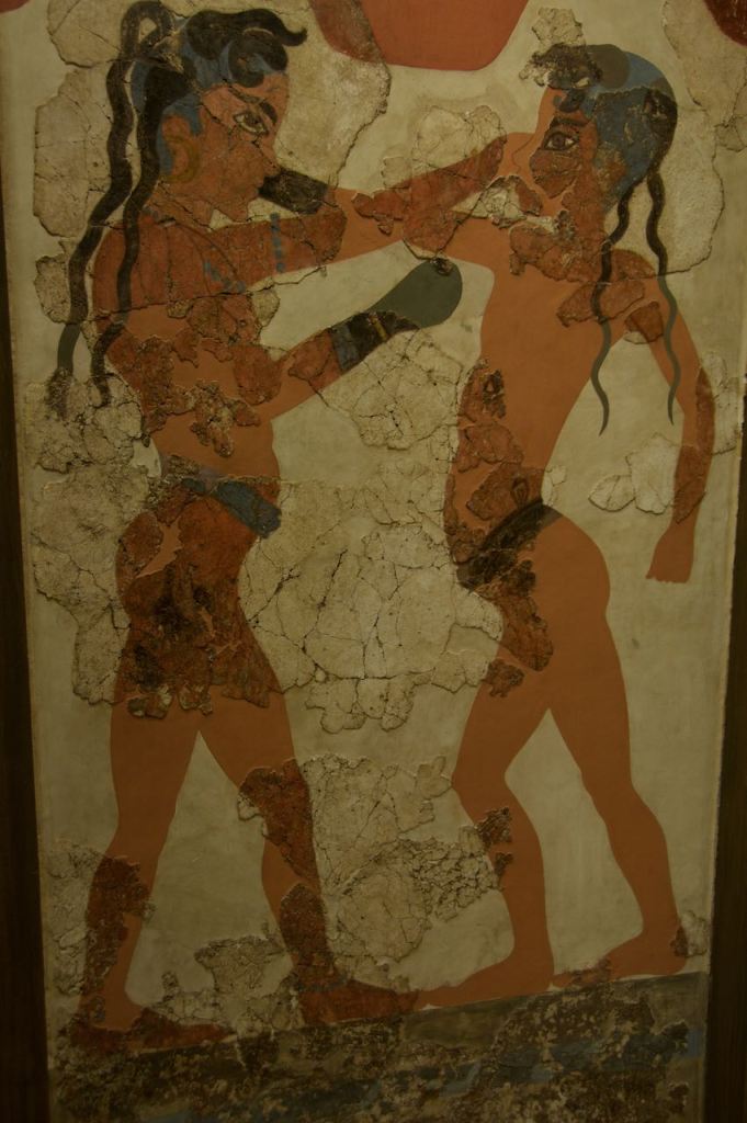 This fresco from Akrotiri of the two keikis fighting was inside the museum along with various other well known pieces from throughout Greece and in High School textbooks. The museum, however, was poorly organized. I felt as though we had to keep passing through the same rooms to get to a new one. Then again, maybe the organization wasn’t the problem. Perhaps dad was just eager to circle the museum four times – prancing around the statues as he is oft known to do.