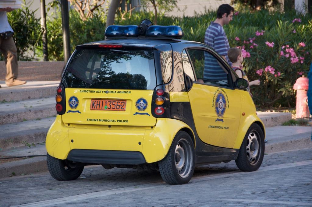 When I was driving on Crete, I got a bit nervous when I first saw signs warning of speed cameras, but passed them going 120kph in a 90kph zone. However, the drivers around me were driving even faster. Apparently the gov’t can’t afford to turn the cameras on or operate them. Occasionally we would see a police car with its lights on just sitting on the side of the road without giving chase. According to Spiros, most of the police force can’t afford to put gas in their cars. This is very puzzling. And in Athens, I witnessed the least intimidating squad car ever (shown here). Being a criminal could be a very profitable career move for Greeks right now. If I robbed a bank and saw a Smart in my rear-view mirror, I would have to chuckle to myself. I could outrun it in my Hyundai as if I was driving a Ferrari. One has to wonder if the government cuts were made in the right areas. Safety and protection should be a major concern especially in a state of rampant unemployment and unrest.