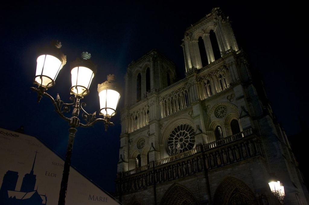 It was relaxing just to roam the hallways without fighting off tour groups and field trips. We left just as the sun was going down. We decided to start walking over to Notre Dame to see it at night. The sun takes quite a while to set here (doesn’t get dark until after 10), so we decided to sit in the heinous looking bleachers to kill time.