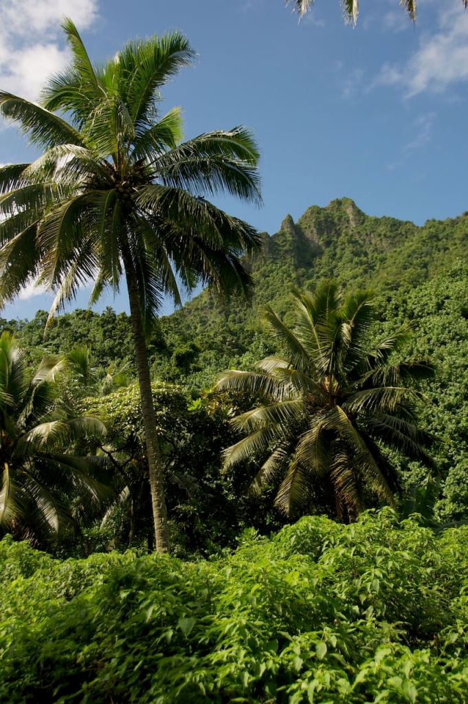 Our plans of the day were flexible based on the weather. Since it was fairly cloudy this morning, we decided to drive around and check out some unique things to bring home from the Cook Islands. I saw a sign for ukuleles and veered down a gravel road where I saw another sign that said, “Ukuleles, last house on the right.” We arrived at some guy’s house where he and a fellow worker were simply making ukuleles by hand in their backyard. I inquired about them, as Cook Islands ukuleles have eight strings instead of the usual four to generate a different kind of sound. He let me play one for a little bit. I only have about three songs memorized, so it went from a traditional Hawaiian tune to the star spangled banner to Weezer. It was pretty neat to play, but kind of expensive. I will have to decide if it’s worth it. Obviously one can’t really order online from a guy making ukes in his backyard. Nicole checked out some black pearls at a marketplace in Avarua. I then decided to randomly drive up a road titled “Happy Valley Road.” It offered pretty decent views of the green mountains with the sun finally showing up to illuminate them.
