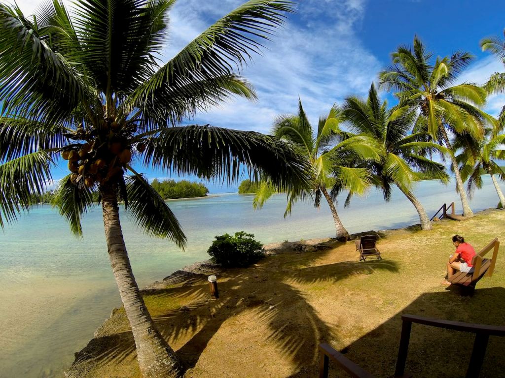 Because the sun finally decided to show up, we headed back to our bungalows and the Muri Beach area. This is the first time we had a real steady sun and we could finally see how clear and blue the water really is. Here, Nicole is skyping on the phone while enjoying the view. We walked down the road to Muri beach, but upon arrival, the sun went away. We also noticed that there were others attempting to venture to one of the offshore islands. This is not acceptable. That was our island. We must now venture to a different island of greater strategic value. We do not like others encroaching on our islands. Don’t they know who we are?