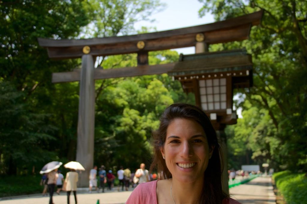 We took a free elevator to an observation deck where we could somewhat orient ourselves to the city. We could identify a few landmarks like the Tokyo Tower and the Meiji-Jingu shrine a mile away, but it was too hazy to see Mt. Fuji or anything like that. After the government building, we continued walking to the shrine we had seen from up above. Walking it seemed to take a bit longer than it appeared from the skyscraper, but it was beautiful sunny weather and we got to take an easy stroll through the park to the shrine.