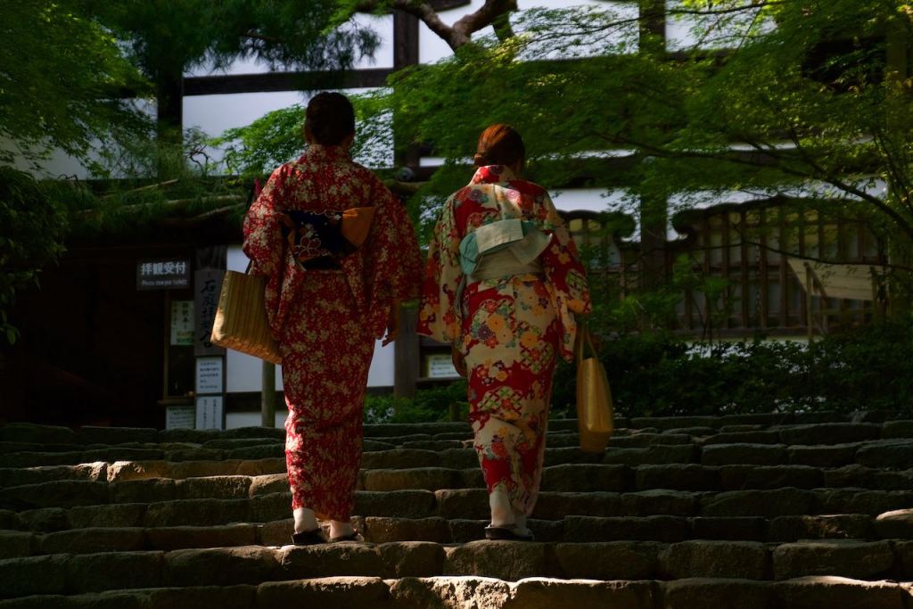 I saw a pair of women wearing kimonos walking up the steps and took a quick pic before a chubby white man got in the shot.