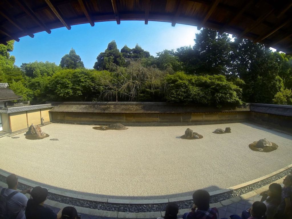 The rock garden at Ryoan-Ji was the inspiration for my backyard Japanese garden project back in Wisconsin. Excuse the blonde hair. The early 2000s were a different time. I cannot help how trendy I was. This garden proved to be quite difficult to keep pristine. Leaves from nearby trees would land within the area and sully it up. Also raking proper circles around the rocks was no easy task either. So imagine the effort it takes to maintain something that is on a much larger scale.