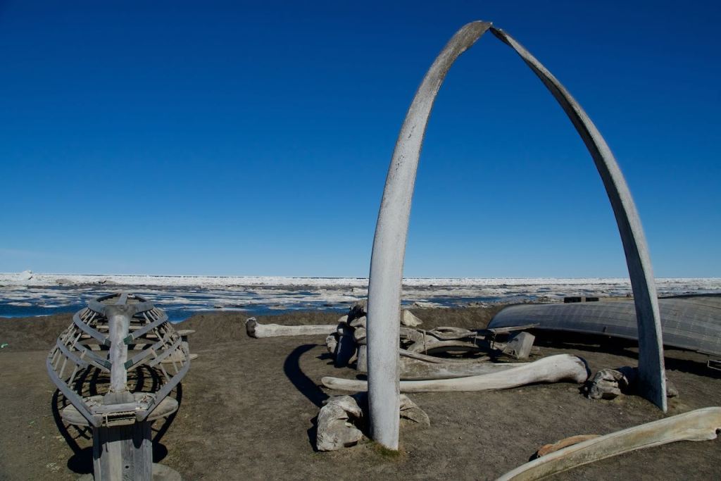 From Prudhoe Bay, the plane continued on for a short flight to Barrow. Touching down more than 300 miles north of the Arctic Circle, I could see ice out the windows of the aircraft. The average high temperatures here in June are around 42. Nicole and I put on our jackets and set out to explore the town. The one semi-iconic image of Barrow is that of some old whale bones planted on the beach. We located this after about a ten minute walk. The whole town looks a bit run down and dilapidated, but outdoor projects must be challenging when it’s 30 below.