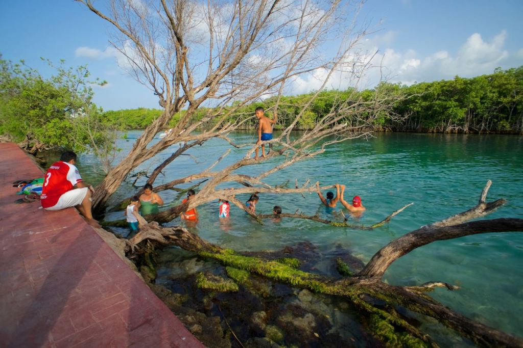 We found a walking path by the water and some mangroves. It seemed like primarily locals were hanging out in this area — either fishing, napping, or just relaxing. After we reached the end of the path, we crossed the street to where there were absolutely no locals. We instead found throngs of tourists lining up to watch pirate shows and other silly things that seem like some kind of living hell for someone like me. I had enough exposure to obnoxious American tourists when I was going through customs at the airport. If you want to understand why a good portion of the world hates us, I invite you to go through immigration in Cancun.