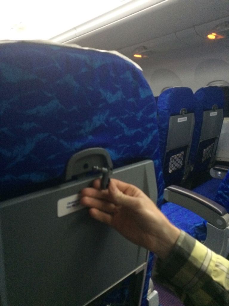 Unsurprisingly, our plane did not depart at midnight either. All of us were sitting at the gate with no plane for more than an hour. When the moment finally came, everyone stood up or flocked to the windows to see if there was really a plane coming to park. It was an Antonov 158. While in line to board, the man behind us was wondering why we were going to Cuba. Greg commented that we needed to get there before there are Wal*Marts and StarBucks. “And efficiently run airlines,” added the other gentleman. Midway through the flight, the spring and pin popped off of Greg’s tray table.