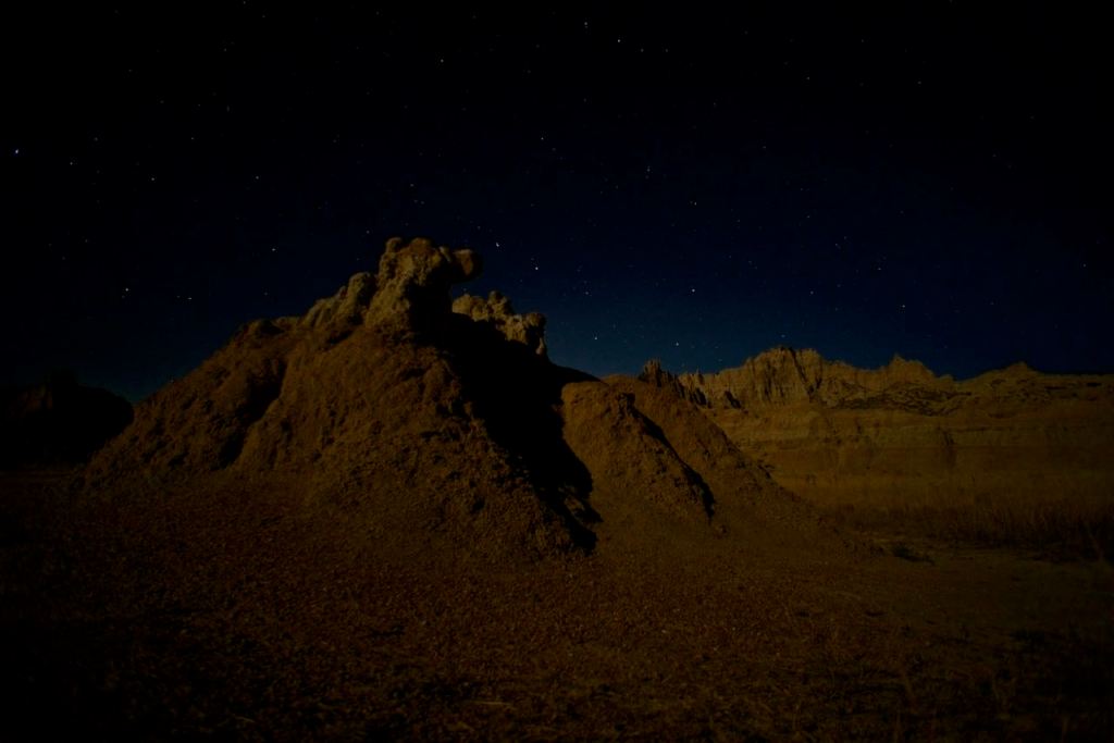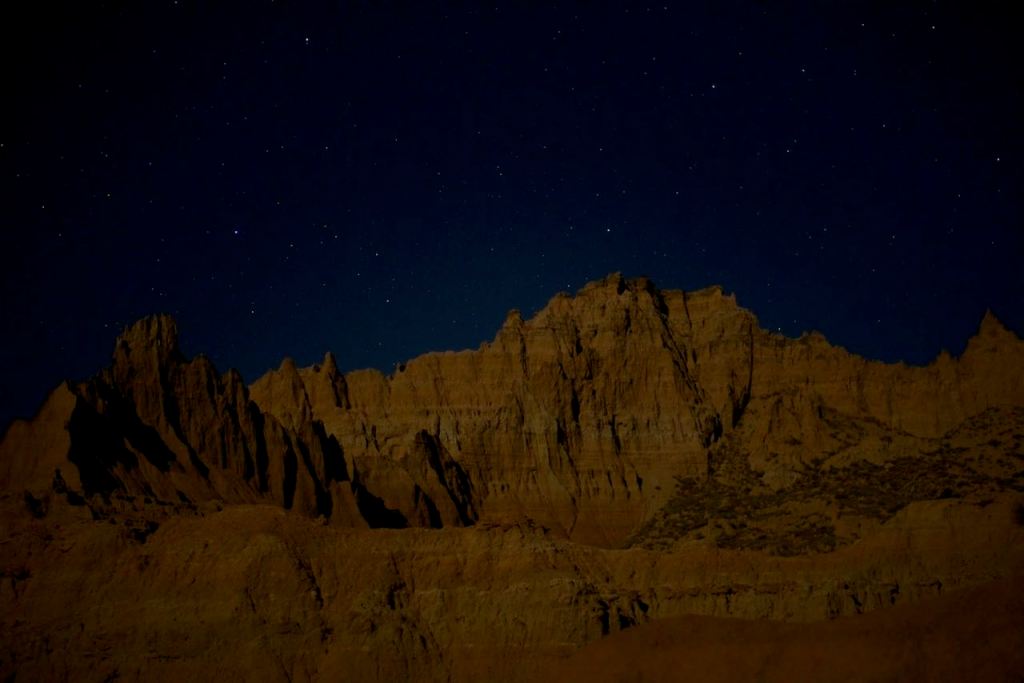After departing Wall with a few sandwiches for dinner later, we entered the Badlands National Park. The sun was working its way down on the horizon and the temperature was actually above 80. We stopped off at an overlook and did a few short hikes as well. It’s really interesting topography to see sprout up out of nowhere in the middle of the prairie. As the sun set, we ate our sandwiches and went back out to try our hand at some star photography. Despite being a long way from the nearest town, it was still a bit bright from the waxing moon in the sky overhead.