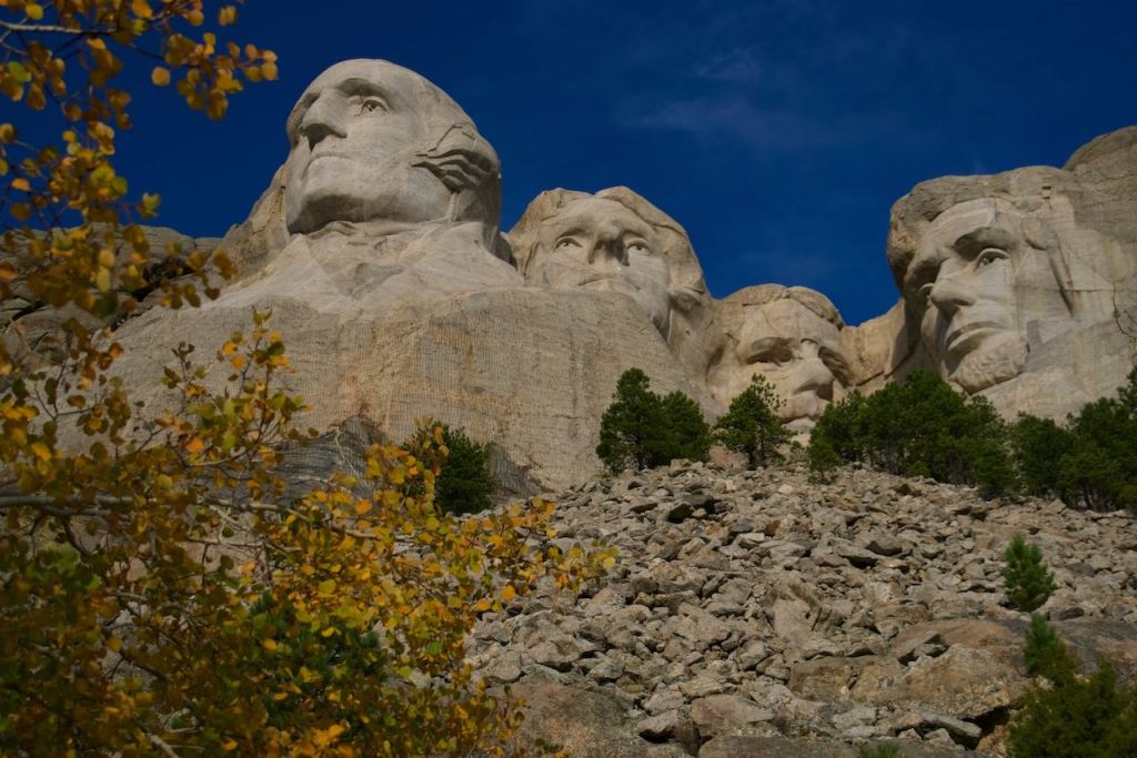 The following morning, we drove about 20 minutes into the Black Hills to Mt Rushmore. I can’t really think of anything to say about it because it’s pretty self-explanatory. It’s stone heads of presidents. The fall colors were just barely starting to show themselves. The temperature in the morning was about 40, but within a few hours it would be over 70. Confusing weather. After about an hour at the site, we continued on to Custer State Park. The ranger at the gate pointed out where we should see some bison since they hadn’t been “worked” yet. Neither Nicole or I had any idea what this meant.