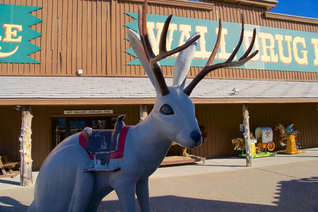 Perhaps you have heard of Wall Drug before. It is the stuff of western legend. Whether you want to buy a dreamcatcher, some fudge, a new pair of spurs, or some pepto-bismol, Wall Drug is your stop. It’s also virtually the only thing in existence between Rapid City and Sioux Falls unless you count the Corn Palace in Mitchell (and who wouldn’t). Nicole and I stocked up on merchandise — t-shirts, bottles of water, a magnet, a christmas ornament, and a donut. The creature you see here is a jackalope, half-antelope, half-jack rabbit. Yep.