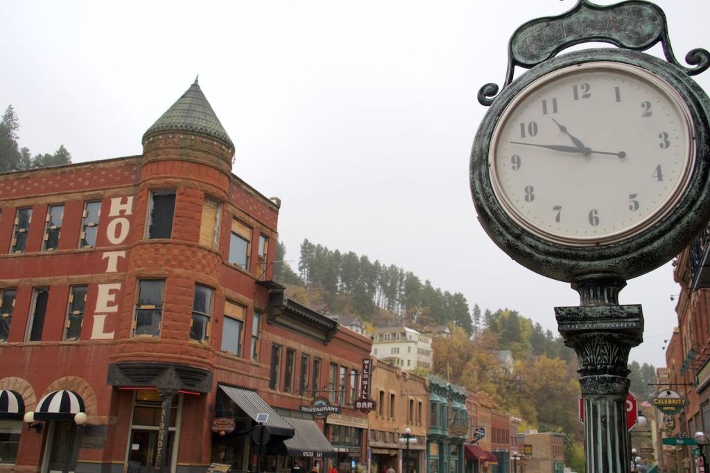 It was drizzly today. It was in the 30s pretty much all day, so time outside was limited. As we drove back into South Dakota, we made a stop in Deadwood, the town known for its lawlessness — now home to tacky tourist shops selling confederate flags and t-shirts with Donald Trump riding a motorcycle. We plugged a meter for 45 minutes, and this was ample to explore the town. As previously mentioned, it was also rather cold, so we didn’t feel like lingering too long outside in the elements.