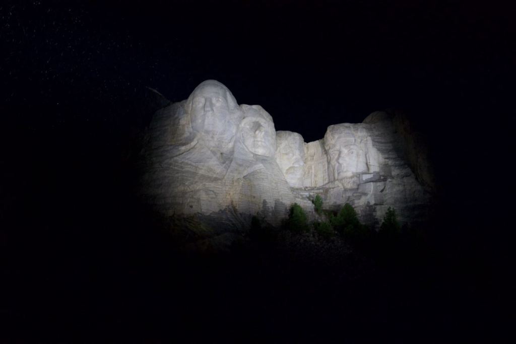 After arriving back in Rapid City and checking in to our hotel, we made a brief stop near Ellsworth AFB to visit the free air & space museum. As it was free, there wasn’t a lot to it, but they did have some aircraft parked outside. By now, it felt like the temperature was in the 20s since the wind had really picked up. We went to the movies to get out of the elements for a couple hours. After that we had some fine Italian dining at some place called the Olive Garden. After stepping back outside into the cold, we debated whether we should go check out Mt. Rushmore at night.