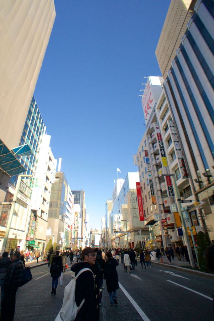 We returned to Ginza to look for a christmas ornament. We are attempting to find an ornament from every place we visit together and we missed out on Japan last time. Luckily we are ridiculous people and are back in the same year. One of the main streets in the Ginza district was closed off to cars, so it was a bit more relaxing than dodging bikes and carts inside the fish market.
