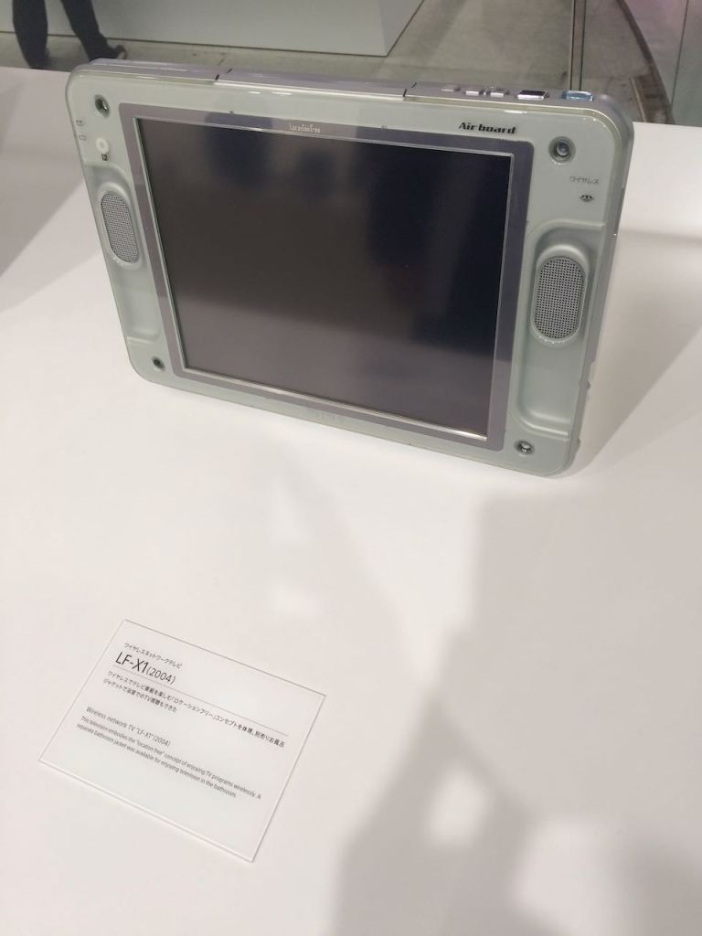 Sony had redesigned the exhibits since our May visit as a sort of history museum starting in the 1940s. As we progressed through time, we saw betamax tapes, walkmans, discmans, digital cameras that recorded to 3.5″ diskettes, and this little gem here — the Sony airboard. It was in the Sony showroom during my visit back in 2001 as the next big thing, a portable TV for businessmen or students. So, it was interesting to see it displayed again as a piece of Sony’s history.