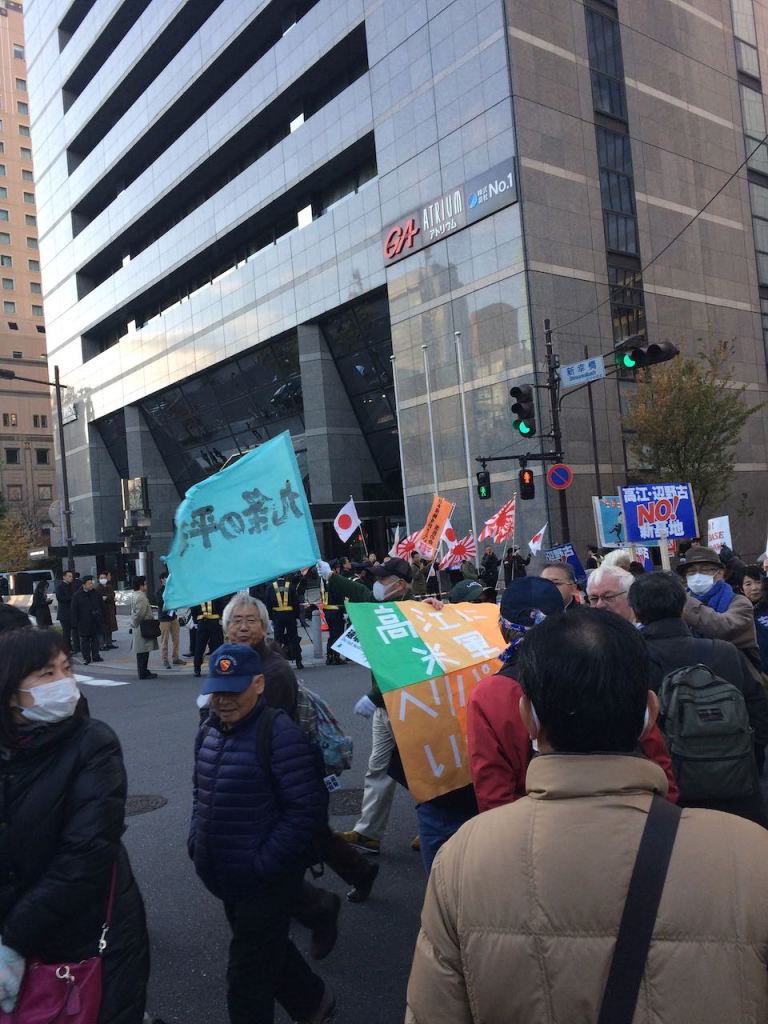 Not knowing the language is difficult. The protests could have been about anything from concerns about pensions to blaming Mexicans for stealing jobs. Either scenario is equally as likely given my knowledge of the Japanese language.