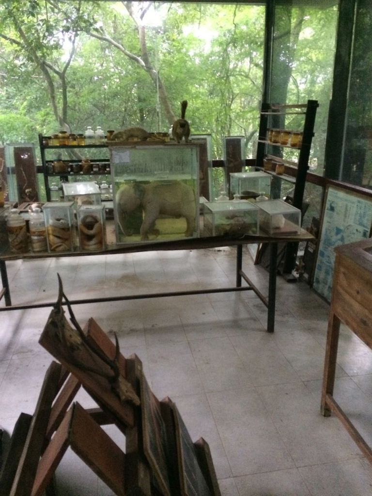 I found the lack of other jeeps calming even if it meant seeing fewer elephants. As it was, we still got to see several up close including the male and female couple above. In addition to the elephants, we saw some monkeys, peacocks, buffalo, a fox, pelicans, and a monitor lizard. The first thing the safari guy pointed out was a chicken. Nicole and I looked at each other like, “Uh huh…it’s going to be that kind of trip.” But as you can see, it rapidly improved. As we reached the end of our safari, we were asked if we wanted to see the museum. We inquired what was in it.