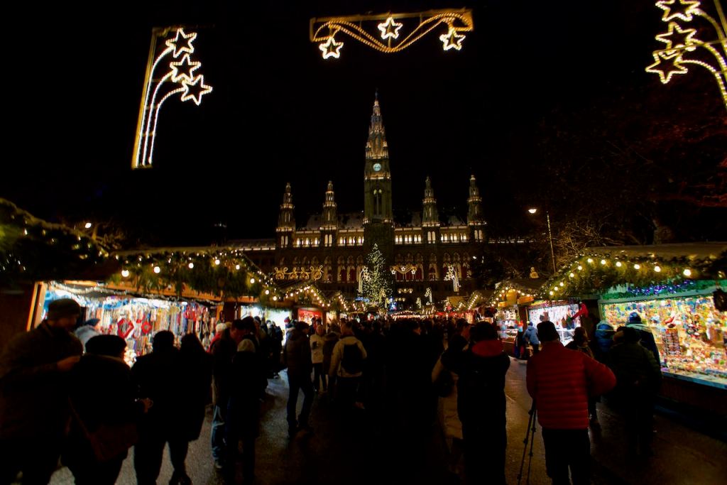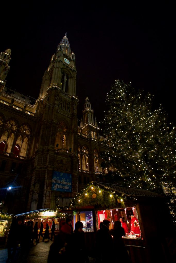 After dinner, we took a taxi to one of the christmas markets in the city. We went to one by the rathaus (city hall) because it was the closest. While the lights and decorations were very photogenic, it was difficult to use my fingers to take pictures. We were not equipped for temperatures below freezing. While we were “cold” in Japan, Vienna took it to a whole new level. My back was hurting from shaking. Even the locals looked cold.