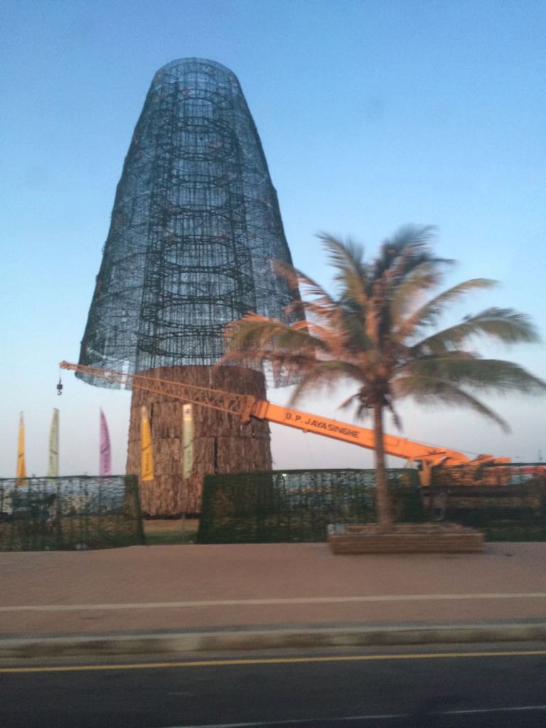 On our way to the airport, we got to witness the progress on the world’s largest christmas tree. It’s still not quite there. It’s like they went all in on the trunk and then realized they didn’t have enough material to do the actual tree portion and now it just looks like an ear plug. Once at the airport, we had to go in a few different lines. There was a security line to get to the check-in counters, which was a bit confusing for folks like us. Overall though, we made it to our gate without too much difficulty.