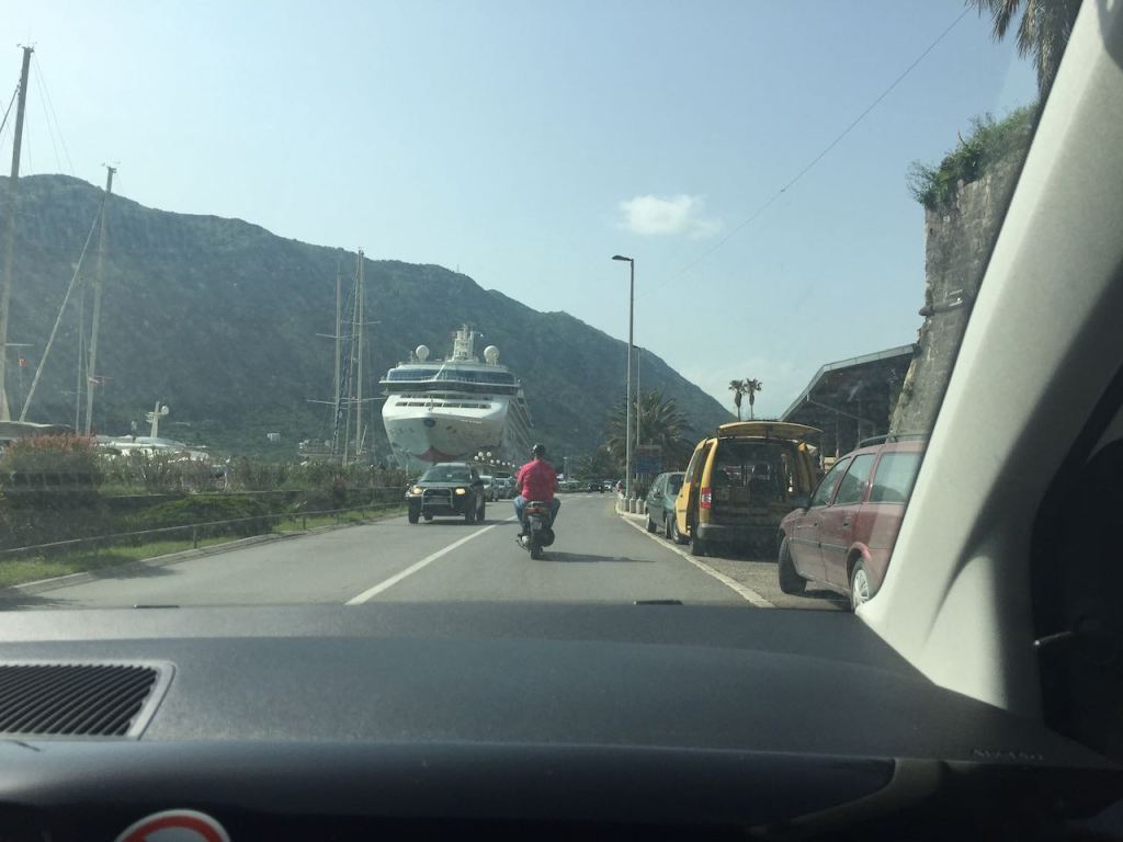 Our little VW Up had a chance to take a rest before we continued on to Montenegro. As I gathered the vehicle documents for country crossings, I noticed the little car was purchased from a Porsche dealer in Split and had Porsche plate holders. I therefore find it fitting to hereby refer to our car as “the Porsche.” We went through two border checkpoints which took us about 35 mins or so. After another hour or so of driving we got to Kotor in Montenegro. Traffic was a mess. While we did eventually find a spot, the guy who booked the room for us called and was trying to guide us to parking.