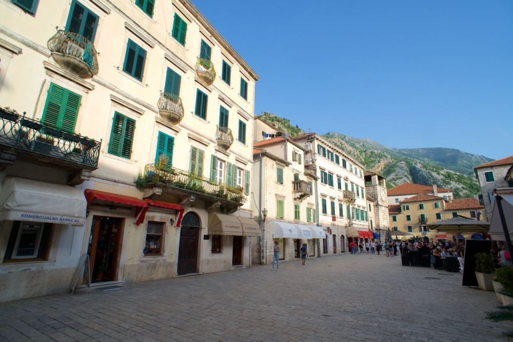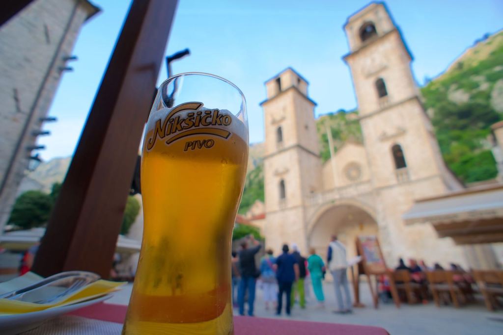 Once free of the “Porsche,” we were able to explore the old town and stretch our legs. The streets were crowded initially, its cafés teeming with the seafarers from the cruise ship no doubt. But within a few hours, the town was emptying out, as the boat tooted its horn and left for some other port of call. Now it was just us, a few other tourists, and lots of cats. We enjoyed sitting in the main square by the Cathedral of St Tryphon while enjoying a couple of local Niksicko beers.