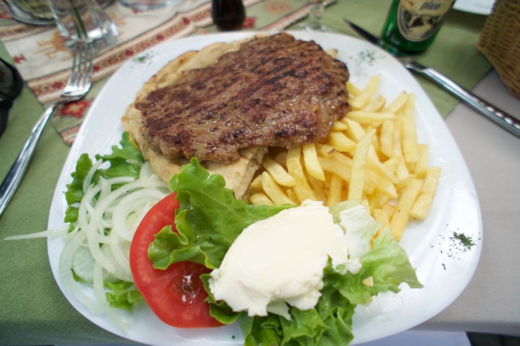 We would have to cross the entire country of Montenegro (at least it’s small), and then into Bosnia to the town of Mostar. Our progress was steady until we reached the border with Bosnia. The gates were down and every car around us was from a different country and we all spoke different languages. Nevertheless, it seemed that the consensus was that they were repaving the road and it would open at 2:00pm. We had about 90 mins to kill. At precisely 2:00, cars started honking their horns and eventually a Volvo from the back of the line accelerated at full speed toward the gates, which were taken down at last minute. We all followed suit. Upon crossing into Bosnia, I was a bit confused. We were greeted not by a sign welcoming us to Bosnia-Herzegovina, but rather Republika Sprska, which is like an autonomous part of Bosnia with its own flag. It was confusing, but research the political history of Bosnia, and you will find yourself even more confused. After driving through the countryside for a while, we eventually reached Mostar and settled into our room overlooking the Stari Most (literally Old Bridge). The “Old Bridge,” is in fact a very new bridge on account of the old old bridge being destroyed back in the 90s during the war. Other than the bullet holes in some buildings and a few abandoned structures without roofs, one doesn’t really feel like there was a bloody war fought on these river banks. Mostar has rebuilt and transformed back into a very cute old town lined with shops and restaurants. I enjoyed a large helping of pljeskavica for dinner, a sort of spiced pork, beef, and lamb patty served with fries and a pita. My travel companion looked at me with a perplexity like someone seeing a Turducken for the first time. It was very tasty, but salty.