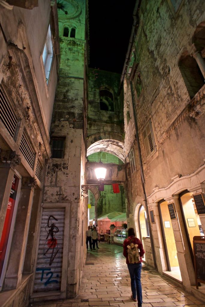 Our next border crossing through the mountains into Croatia was easy, and within an hour we were in Split on the Dalmatian coast. The general theme in this area is that parking is a premium. Cars were parked on the sidewalks, on boulevards, or anywhere there was a flat piece of land. We luckily had our own garage attached to an AirBnB and didn’t have to leave the “Porsche” out in the open in this bustling city. We also had a washer/dryer unit in our temporary home which was crucial. We walked through the old streets of Split and were able to see a well-preserved Roman city now playing host to a vibrant night life scene. We visited the Diocletian Palace, and enjoyed walking the narrow alleys and backstreets of this old city.