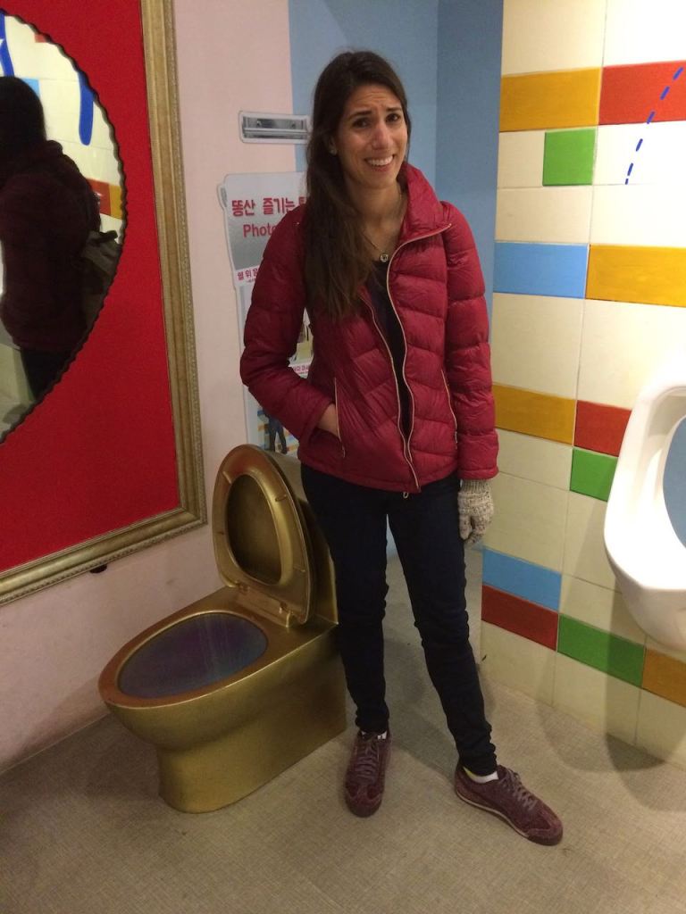 After arriving at our hotel after midnight, we had little difficulty falling asleep despite a malfunctioning temperature controller that was permanently stuck on 84 degrees. That would all have to wait. Our first order of business on day one was the PooPoo Museum (obviously). I found great amusement in the entrance steps which made fart noises as one made their way to the museum. It was a peculiar place which was as much obstacle course as it was poop-related. It culminated in a nearly vertical slide that went down to a poop tree, whose branches consisted of charm/wishes that visitors wrote. I made one about Nicole having healthy bowel movements, which I think she should appreciate. Then we walked to nearby Gyeongbokgung Palace.