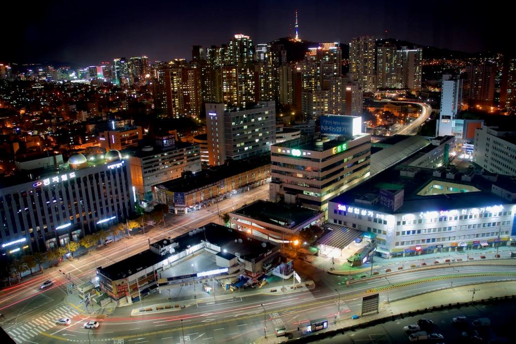 The restaurant’s specialty seemed to be all chicken all the time. It was good to catch up for a bit and enjoy a decent meal, even if it was all chicken. We eventually got back to our new room (we switched because of the broken temp. controller) and took in our view of the city at night before debating what we would do the next day.