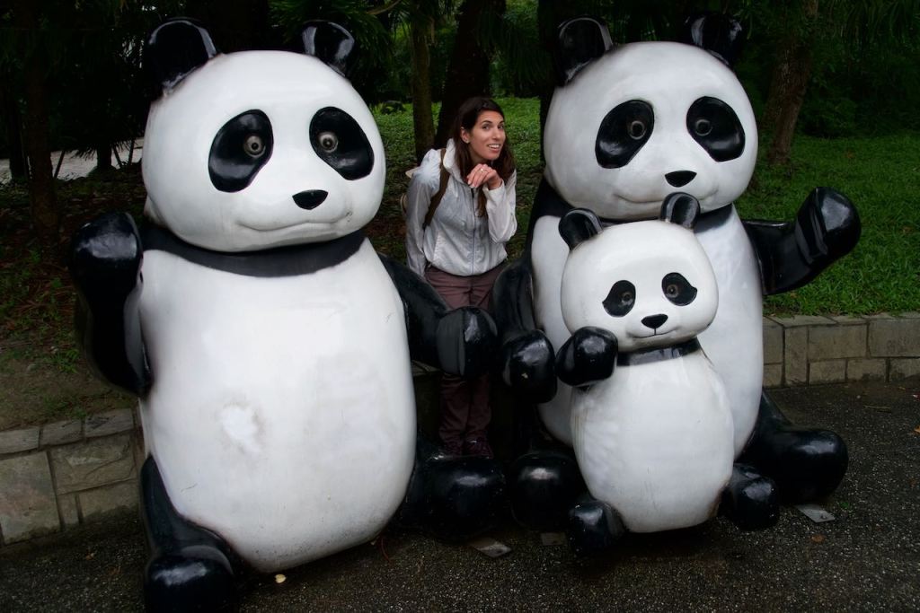 After that, we went down another stop to the Taipei zoo. Nicole was very keen on seeing some pandas. Unlike American zoos which are quite expensive, the two of us each paid the equivalent of $2 for entry. Not too bad. We saw elephants and giraffes roaming about, but a lot of the other animals were laying low. I suppose the weather didn’t help. We did ultimately see a couple pandas, but my pictures weren’t very good because I was shooting through dark glass, so you’ll have to settle for this one of Nicole blending in among a family of pandas.