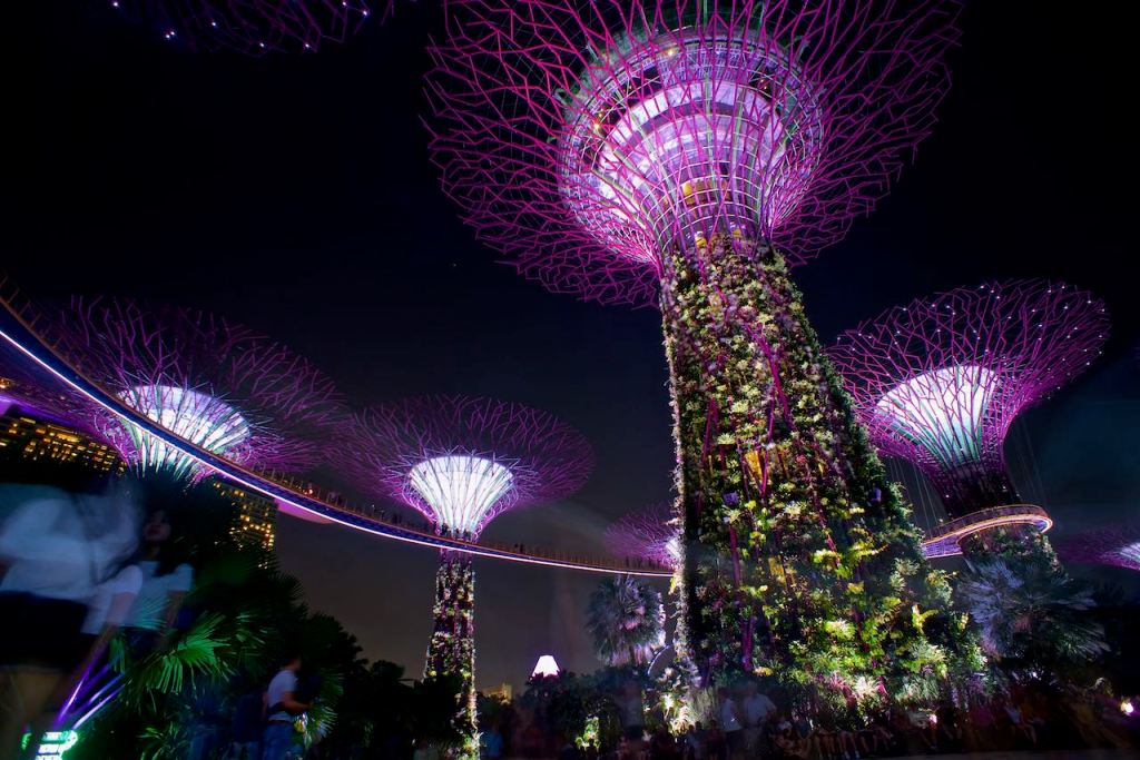After recharging back at the hotel, we ventured out once again — first for crepes at a French cafe nearby. Then we walked back to Gardens by the Bay because they light up all the fake trees at night. They also have a sort of light show that they do to music, but having been previously underwhelmed by such light shows, I didn’t make it a point to sit around and wait for it to happen. The same could not be said about the hundreds of people that seemingly showed up out of nowhere to do just that.