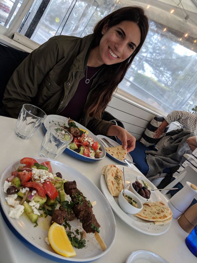 We took our time walking back before having greek food at one of the few outdoor cafes. We got in just before the crowds really took over. One needs a reservation at most restaurants here. They are very popular. We have pretty much eaten at every restaurant in Balmoral except for the super fancy ones that inexplicably closed at 3:00pm anyway. I had some fish and chips at another stand earlier in the day.