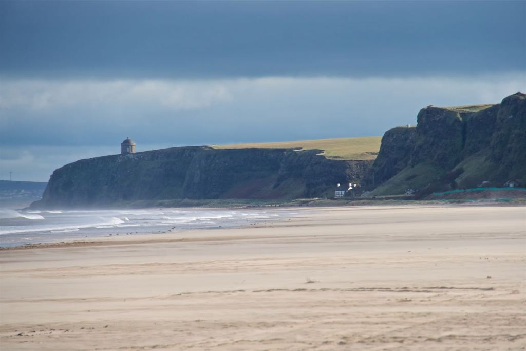 I had set an alarm just to be safe so we wouldn’t miss the breakfast downstairs. The alarm was needed. We were the last people to arrive for breakfast. After another hearty Irish breakfast, we packed up our things and got back on the road toward the southwest. After a 25 minute drive or so, we stopped off at Benone Beach just to break up the driving a bit. We were one of two cars in the carpark. Whilst the other two ladies ran along the beach with their dog, we were blown away by the wind. Many of these communities in the north become quite popular in the summer evidently, but not today. The temperature was actually the warmest it’s been thusfar, high 40’s. That being said, the wind did quite a number on us, and our time at the beach was brief.