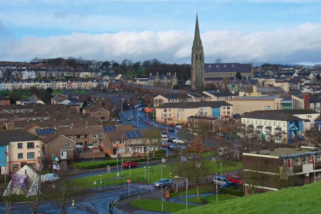 We continued on until we got to the city of Derry, or Londonderry, whichever side you support I suppose. Derry is the only place in Northern Ireland I had previously visited when I came with my family back in 2002. Back then, there were military helicopters and multiple police checkpoints with armored cars. A large radio mast stood over the old city walls. When I was there this time around, none of that existed. The whole city was quite sleepy looking in fact. Not that many people were out. We parked along the street near the bogside, the same location that is known for the “Sunday Bloody Sunday” massacre back in the 70s when British troops fired upon civilian protesters. Large murals still canvas the buildings. From there we walked up the hill toward the city center and walked along the old city walls for a while before turning back. It seemed like all the shops were closed and not a lot was going on. Despite the two sides being at peace for some time now, their loyalties are still very clear. Curbs along the streets are painted red, white, and blue if favorable to the United Kingdom, and green, white, and orange if they favor unification with the Republic of Ireland. Graffiti promoting the IRA is nearly everywhere, despite it pretty much falling into irrelevance. To be fair, anxieties are a bit heightened as of late due to Brexit; and a recent car bomb last month led some to believe that it could spiral into a renewed conflict. From what I gather however, neither side has any desire for that to happen again.
