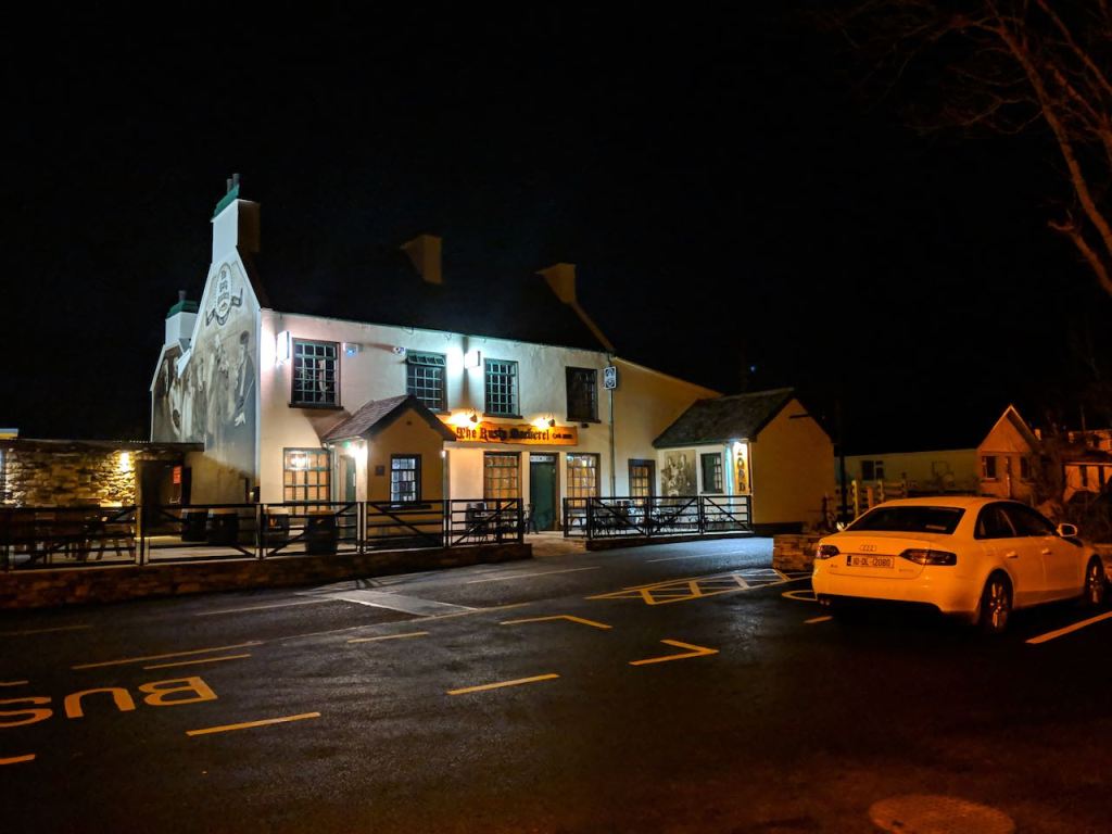 We ate dinner in “town” (15 minute drive away) at a pub. I had the usual fish-and-chips washed down with a pint of Guinness. There is something markedly different about the way it is poured here and it’s like drinking an entirely different beer than a Guinness one would order back in the U.S. After dinner, we grabbed some items for breakfast at a small market, drove back to our cottage on the pitch black roads, threw some logs into our fireplace, and enjoyed the rest of our evening without Wi-Fi.