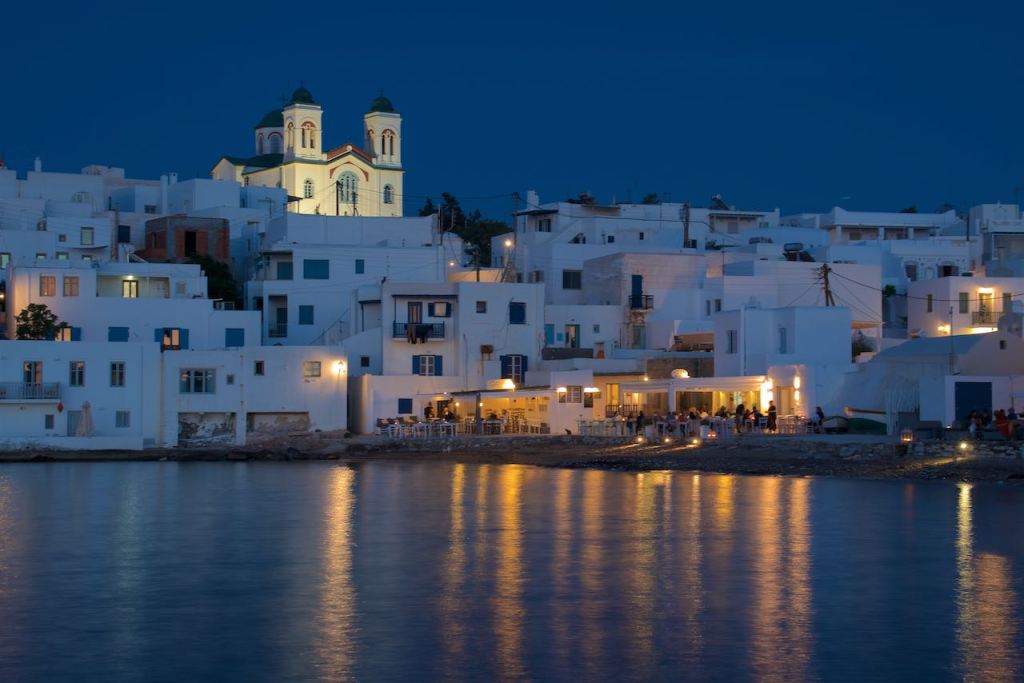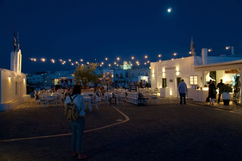After our adventures in Antiparos yesterday, we relaxed by the pool and went back into Naousa for dinner. We ate outside at a traditional Greek taverna. We split an oversized Greek salad, some pita and tzatziki, and I also had an oversized portion of moussaka. It was a very filling meal. And I recall from my previous visit to the Greek islands that most restaurants would give you a “free” dessert or after dinner drink. So far on Paros we are 2-for-2. We had some kind of dessert wine the first night, and a baklava-esque cake the second. I was observing other people around us getting the dessert and was concerned that they wouldn’t give one to us. That would have possibly created a scene.