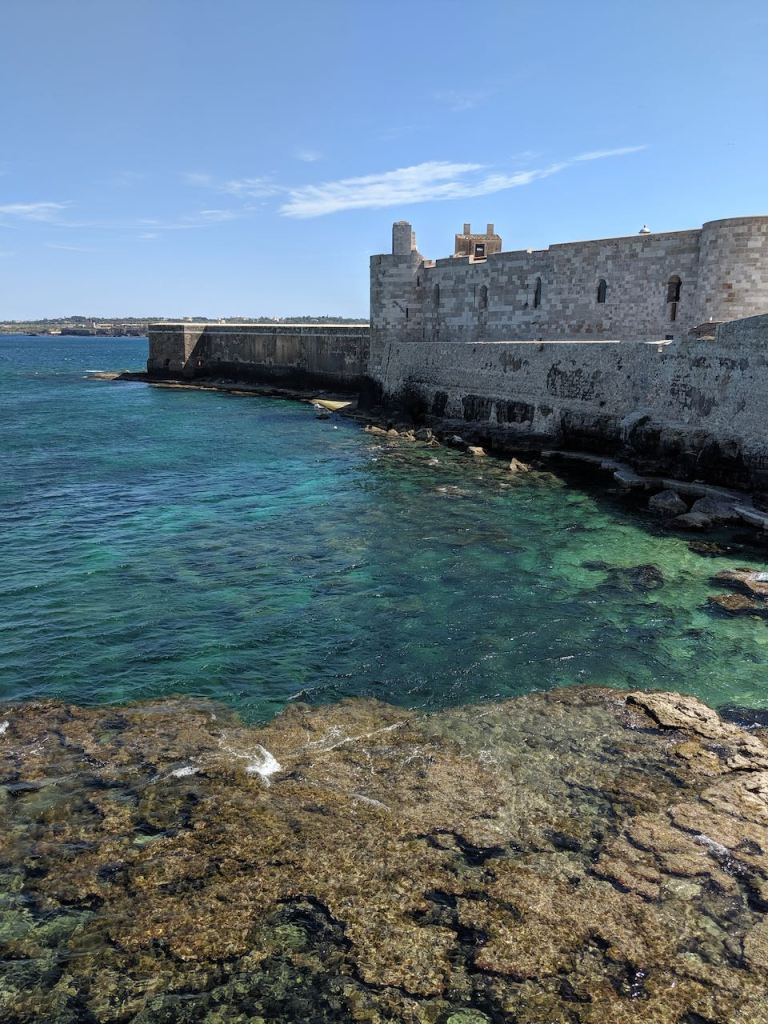 Anyway, it was a two and a half hour drive to Syracuse (or Siracusa), so we got plenty of exposure to bad driving. At one point, an impatient driver actually drove between me and the oncoming traffic straight down the median. We made good time to Siracusa arriving around 1:00pm. We walked to the hotel we had booked, which was kind of hidden within a sketchy apartment complex. There was nobody to check us in. Nicole called a number and the guy told us to get lunch and that he’d be there at 2:00pm. We had all of our bags, and we weren’t entirely hungry either. In fact, we were quite cross with the situation. So much so that when the guy finally showed up, we told him we were canceling. I quickly booked a hotel down the street and we checked in a few minutes later. Once we finally were settled, we walked across a bridge into an area called Ortygia, which is the old historical part of the city.