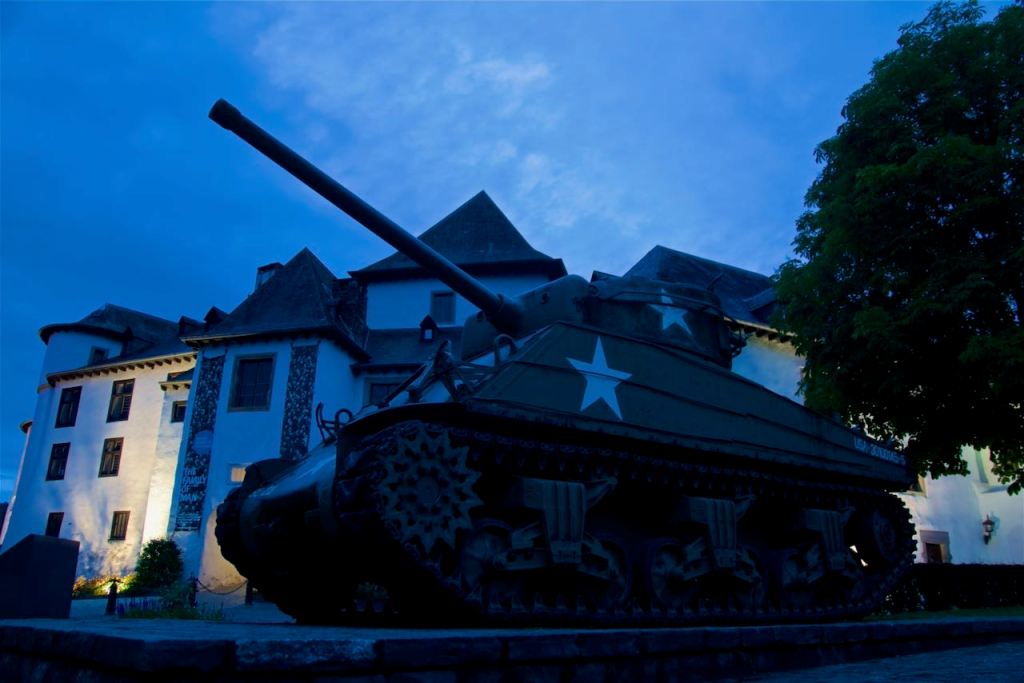 From Bastogne it was a short drive to Luxembourg and from the border, a mere 20 minutes to the town of Clervaux. It is closer to Germany than Belgium, which demonstrates just how small the country of Luxembourg is. It was a grey evening in the town, but we were able to explore the chateau and the small pedestrian area of the town before it started raining. We took refuge inside our hotel’s restaurant where we had beers and pizza. We briefly retired back to our rooms, which by the way, were larger than our apartment in LA. We then reorganized for another walk around town. We learned more about the history of Clervaux and discovered that an American Sherman tank on display just outside the chateau overlooking the town is the actual tank that defended the town from a German attack. It would quickly drive out from behind a building, fire a round at the Panzers attempting to advance down the road, and retreat back behind the building. Shockingly, this tactic proved to be fairly effective, and it suffered only a glancing blow during the battle. For whatever reason, the Army elected to pull it from action and it remains pretty much where it was left…a fascinating piece of history.
