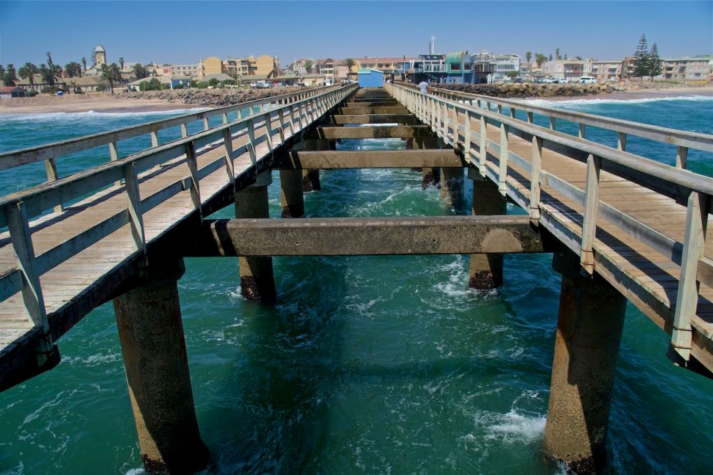 There is a heavy German influence from the area’s history as a major port for German Southwest Africa during its colonial era. Many buildings are named after the Kaiser or other early 20th-century German political or military leaders. It is kind of a surreal place. When we arrived a marine layer had swept over the area, and it had burned off in about an hour. It was just like L.A. The brightly colored buildings and blue ocean water contrasted starkly with the desert and dunes immediately beyond the town. It was a strange sight. The coastal area itself looks very well-to-do and seems more visually at home in Malibu than in Namibia, but every day is a surprise here. We locked up our bikes and walked around the town center for a bit. Lots of people were hawking different things, which wasn’t fun, but some were wearing orange vests labeled, “Hawker,” as if the town somehow regulates people trying to sell things on the street. It was . . .interesting. We eventually circled back to the Swakopmund Brewing Co. for a couple beers and bratwurst (naturally). From there we biked back to the Driftwood before deciding to order a pizza for take away.